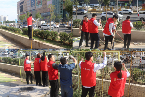 9月24日,新商城運(yùn)營公司黨支部組織開展“環(huán)境衛(wèi)生整治”主題黨日活動(dòng),弘揚(yáng)“奉獻(xiàn)、友愛、互助、進(jìn)步”的志愿精神。活動(dòng)中,黨員志愿者身著紅馬甲,協(xié)作拆除商城外圍陳舊圍擋,清理地面雜草垃圾,并拿起水管,給周邊綠化帶中的植物澆水,草叢在灌溉下愈顯生機(jī)。