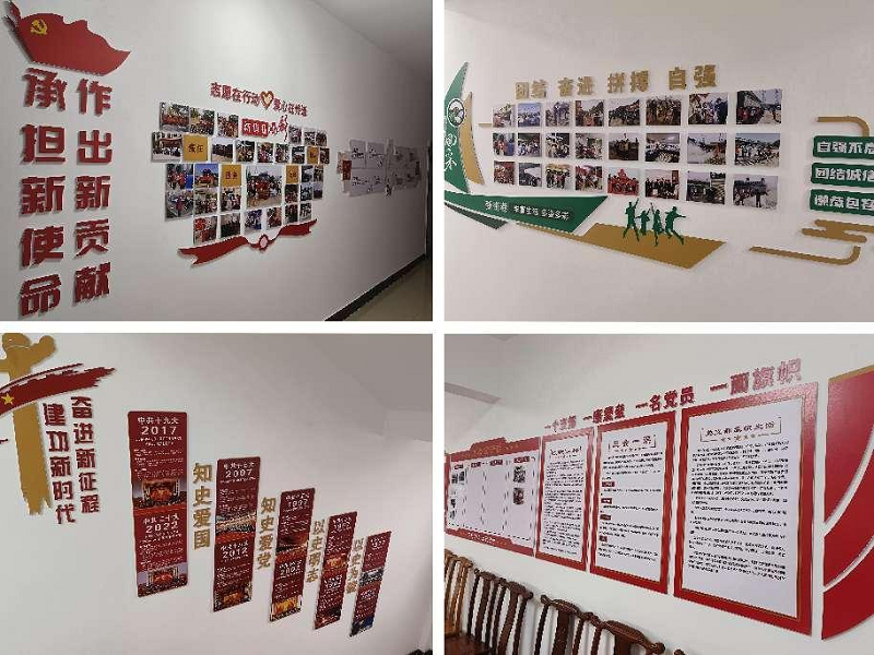 文化墻內(nèi)容包括黨的一大到二十大黨史、四個(gè)意識(shí)、四個(gè)自信、兩個(gè)維護(hù)、黨員干部職工風(fēng)采、黨建品牌、黨務(wù)公開(kāi)、黨員示范崗等內(nèi)容,陣地建設(shè)的打造,不僅宣傳了黨建知識(shí)、展現(xiàn)了黨員形象,還涵蓋了當(dāng)前黨建工作的重點(diǎn)內(nèi)容,將黨建品牌上墻,可以很直觀(guān)的看到黨建深度融入生產(chǎn)經(jīng)營(yíng)工作取得的實(shí)效性做法,可以讓職工群眾更深刻直觀(guān)的了解黨員先進(jìn)形象,同時(shí)不斷激勵(lì)黨員創(chuàng)先爭(zhēng)優(yōu)、爭(zhēng)做模范,進(jìn)一步提升了黨建的文化內(nèi)涵,使廣大黨員群眾在潛移默化中了解、支持、深化黨建工作,不斷提升黨建活力,發(fā)揮黨建引領(lǐng)作用。