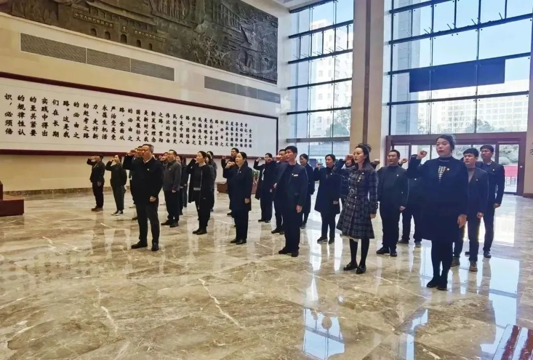 參觀學(xué)習(xí)開始前,公司黨委副書記、副總經(jīng)理成小俊同志帶領(lǐng)全體黨員面對(duì)鮮紅的黨旗,鄭重肅立,高舉右拳,以集體宣誓的方式重溫入黨誓詞。一句句鏗鏘有力的誓詞,表達(dá)著對(duì)黨的絕對(duì)忠誠(chéng)和為黨的事業(yè)奮斗終身的決心。