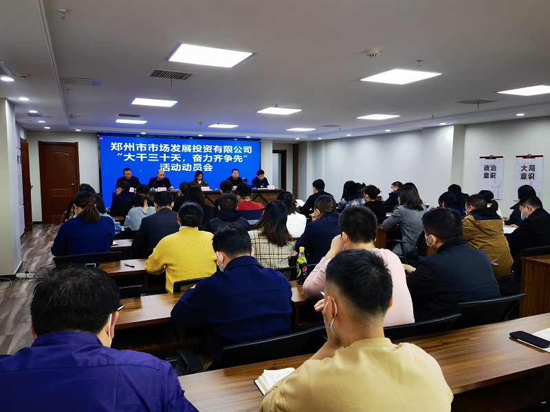 12月6日下午,鄭州市市場(chǎng)發(fā)展投資有限公司召開(kāi)“大干三十天,奮力齊爭(zhēng)先”活動(dòng)動(dòng)員會(huì)。公司常務(wù)副總經(jīng)理趙潔,黨委委員、工會(huì)主席龐曉冰,黨委委員、總經(jīng)理助理孫濤,黨委委員、綜合管理中心總監(jiān)楊哲,黨委委員、財(cái)務(wù)管理中心總監(jiān)逯衛(wèi)川出席。