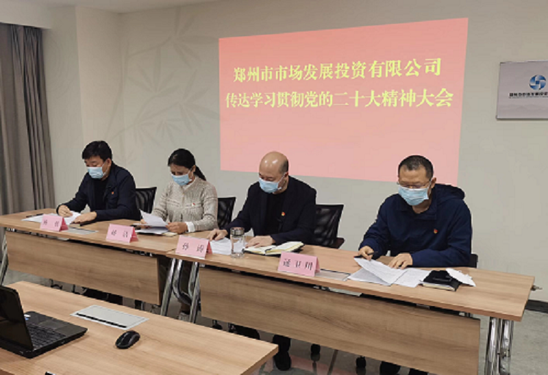 11月9日上午,鄭州市市場(chǎng)發(fā)展投資有限公司召開(kāi)傳達(dá)學(xué)習(xí)黨的二十大精神大會(huì)。會(huì)議指出,認(rèn)真學(xué)習(xí)宣傳貫徹黨的二十大精神是當(dāng)前和今后一個(gè)時(shí)期的首要政治任務(wù),要深刻領(lǐng)悟“兩個(gè)確立”的決定性意義,堅(jiān)決做到“兩個(gè)維護(hù)”,更加緊密團(tuán)結(jié)在以習(xí)近平同志為核心的黨中央周?chē)?,以“五個(gè)牢牢把握”為重點(diǎn),深刻領(lǐng)會(huì)和理解把握黨的二十大報(bào)告的豐富內(nèi)涵和精髓要義,切實(shí)把思想和行動(dòng)統(tǒng)一到黨的二十大精神上來(lái),以更加昂揚(yáng)的精神狀態(tài),努力創(chuàng)造新的更大業(yè)績(jī),在鄭州國(guó)家中心城市現(xiàn)代化建設(shè)中展現(xiàn)國(guó)企更大擔(dān)當(dāng)。會(huì)議以視頻形式召開(kāi),公司領(lǐng)導(dǎo)班子成員,各中心、子公司主要負(fù)責(zé)人及相關(guān)人員參加會(huì)議。